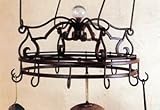 These Small Round pot racks from Steel Works have a European flair. Made of handforged wrought iron with handblown glass finials, the pot racks come with 12 hooks and are available in several finishes. The glass finials are available in Clear, Green, Blue, Tortoise, Silver or Turquoise. Additional hooks are also available..../ SteelWorx Small Round, Silver Glass Finial 22 in. W x 13 in. H, Premium Finish, 20% web site promo / Finial